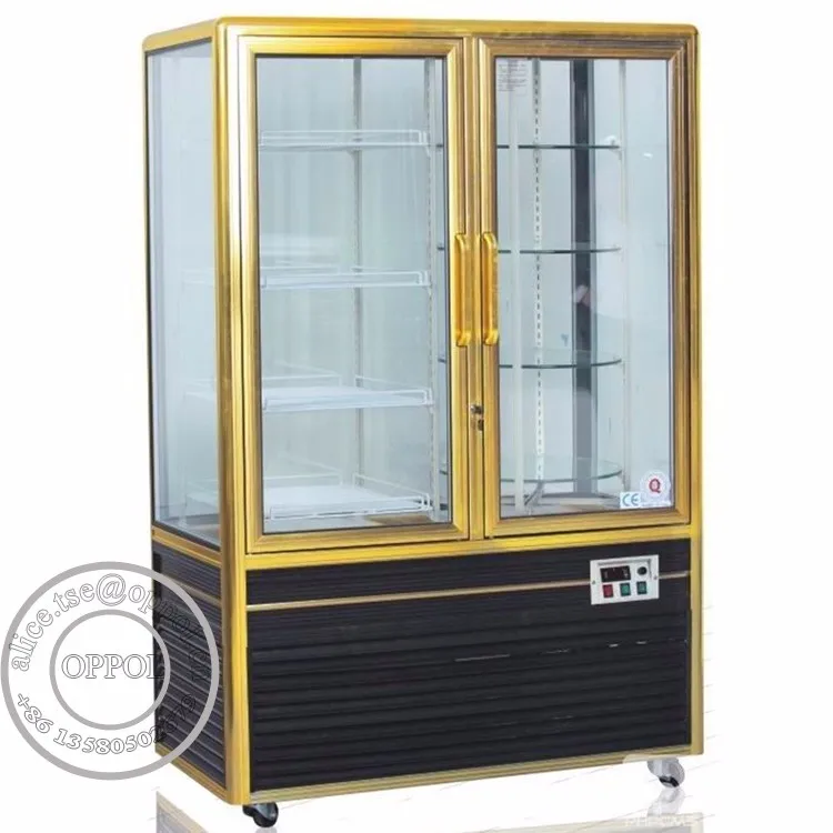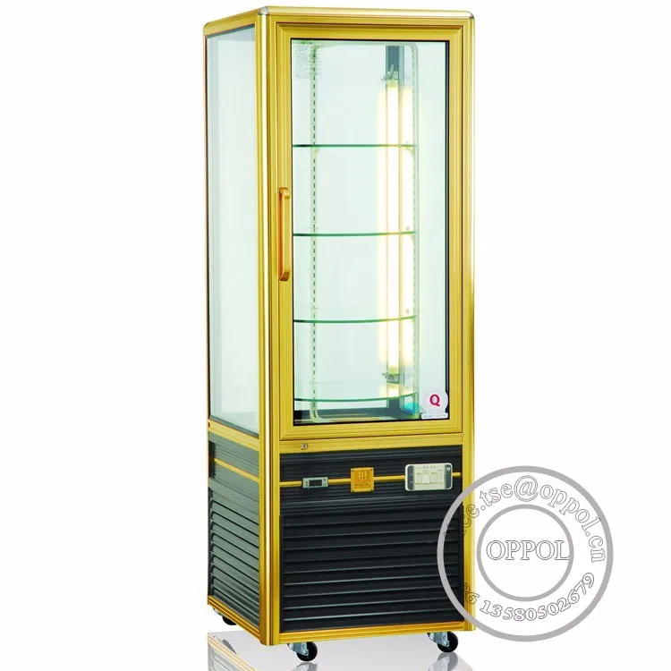 OP-A1307 Large Capacity All Around Glass Doors Gold Color Display Cake Storage Refrigerator